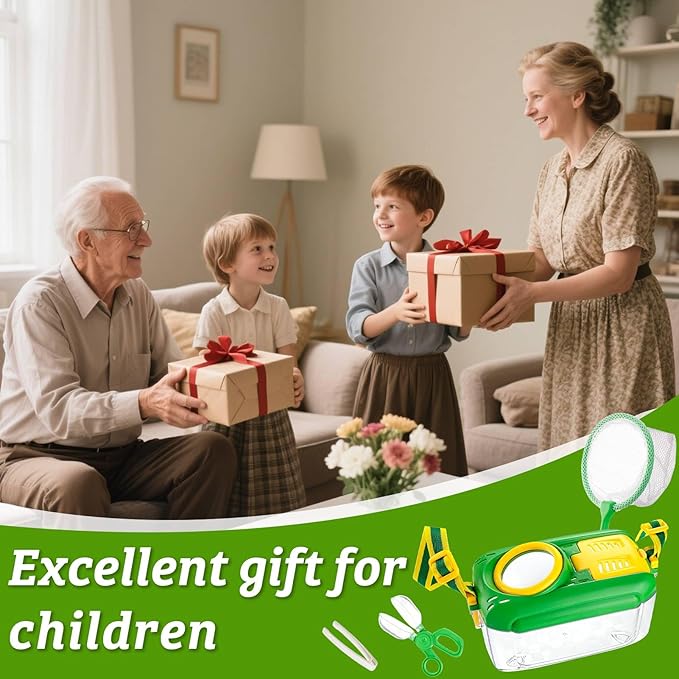 • Surprise Gift for Kids: The bug catcher kit is an ideal birthday gift, children's day gift, outdoor adventure gift, Christmas gift, etc. for your son, daughter, or grandchildren, encouraging them to have the curiosity and action of exploring the world and actively discovering the wonders of nature.