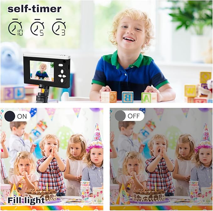 • 【Kid-Friendly Timed Shooting Mode】‌ Spark creativity with a simple timed shooting function, letting young photographers capture selfies, group photos, or dynamic action shots with ease‌