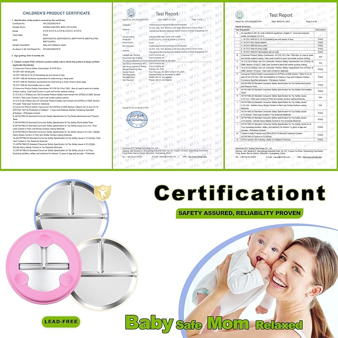 • Anti-Spill Suction Plates: The ​suction plates for baby​ feature a ​2-in-1 design, a detachable ​stainless steel toddler plate​ paired with a ​non-slip silicone base. The suction base is holds well, helps reduce spills and tips, even for the most active toddlers