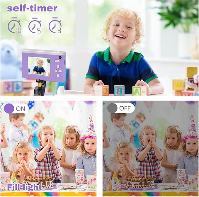 • 【Kid-Friendly Timed Shooting Mode】‌ Spark creativity with a simple timed shooting function, letting young photographers capture selfies, group photos, or dynamic action shots with ease‌