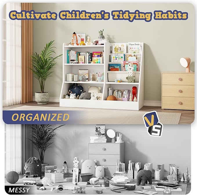 • Multi-Functional Use --- This Kids Wooden Bookshelf is suitable for bedroom, kindergarten, classroom, living room and other multiple places; which can create a comfortable, interesting reading corner for child to cultivate. This toddler bookshelf can help children to tidy up their room neatly, which can be a good way to develop children's independence and organization.