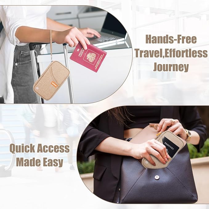 • THOUGHTFUL OUTSIDE STORAGE: The pocket is conveniently placed on the front of the passport wallet, which is great for storing your phone or any other frequently used items. The pocket slots are designed to be wide enough, enabling them to accommodate large cell phones. And it comes with a removable wristlet strap, You can keep everything at your fingertips, ensuring that your items are not only handy but also highly convenient to access at all times.