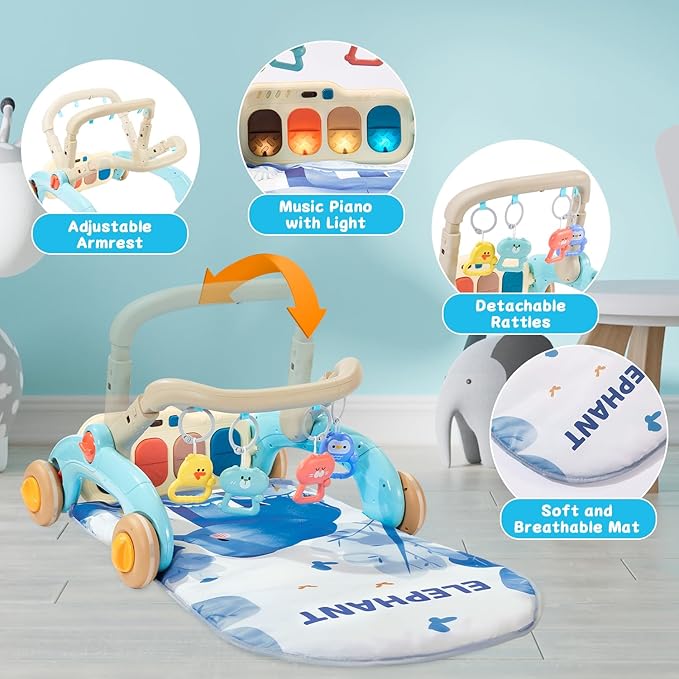 • Perfect Newborn Gift. Our baby gym playmat and walker are designed with babies in mind, focused on early learning and growth. From the sensory stage to the exploration stage, this baby girl play mat with piano provides a rich learning experience for babies, allowing them to grow and learn effortlessly through play. Packaged beautifully, it makes for a great gift for newborns infants and toddlers.