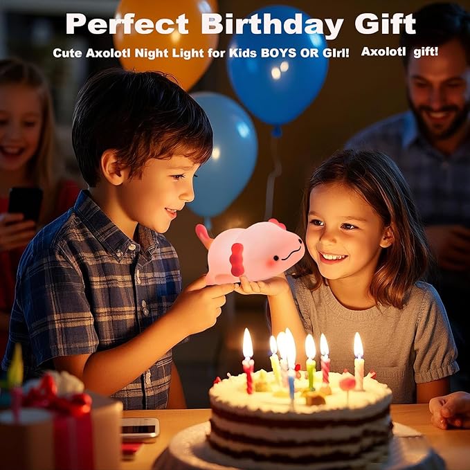 • Axolotl gifts-Novelty Nursery Lamp and Squishy Axolotl Lamp:This cute LED axolotl night light is perfect gift! Whether for holidays, birthdays or Christmas, this delightful axolotl light makes a thoughtful present for kids, friends, mothers, fathers and loved ones. Also Very Suitable For New Mommy As Nursery Light,For Breastfeeding, Reading, And Preventing Falls During The Night