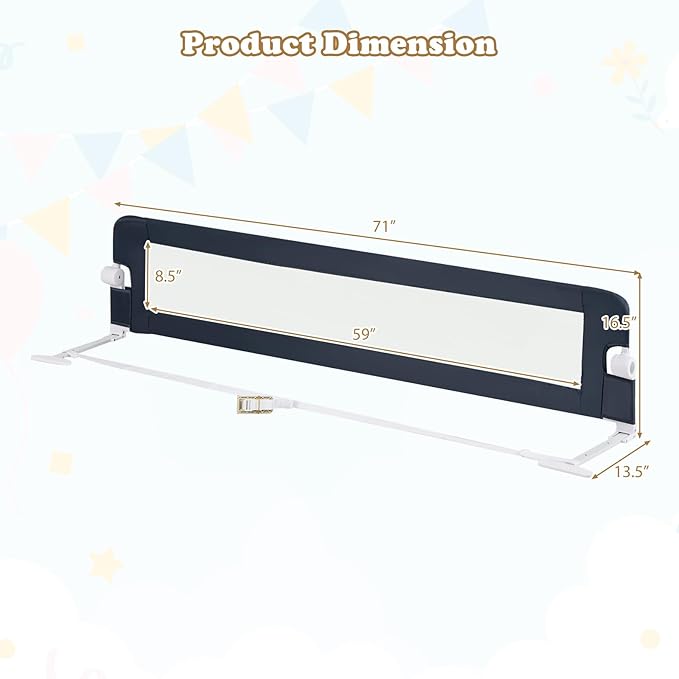 • Protect Your Baby's Safety: These 2 pack extra-long bed rails are 71 inches long each for added safety. Also When your kids sleep alone at night, they can provide them with the best protection and safe sleeping environment. They are your kid's safety guard, so you don't have to worry about your baby falling off the bed.