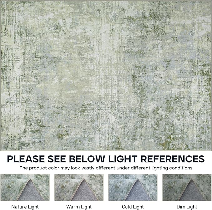 9x12 Area Rugs for Living Room Rug Washable: Modern Large Rug for Dining Room Bedroom Carpet Non Slip 9 by 12 Indoor Abstract Nursery Home Office Green