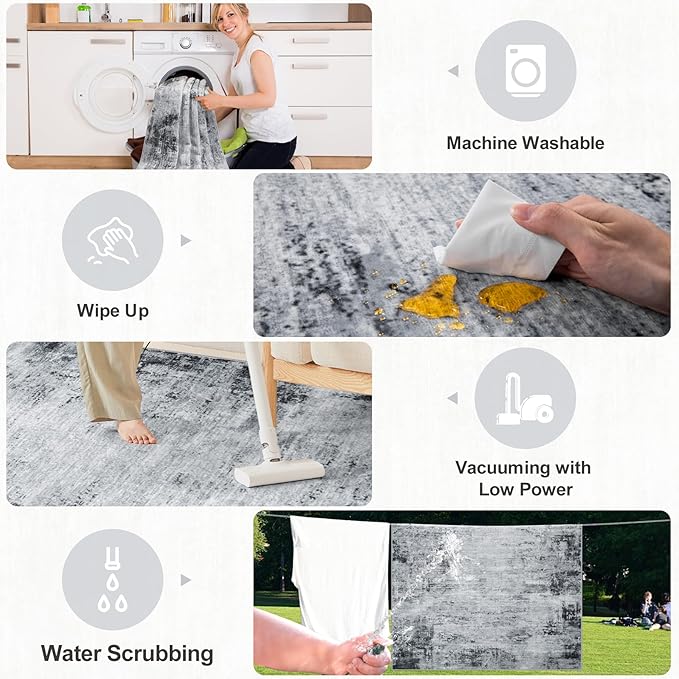 • Machine Washable Area Rug: Say goodbye to hidden dirt and cleaning hassles. The 0.2" low pile soft rug keeps most dirt on the surface, Easy to clean with a low-power vacuum cleaner.They are machine washable, and for sizes 6x9 and larger, we recommend using a commercial washing machine to restore their original beauty