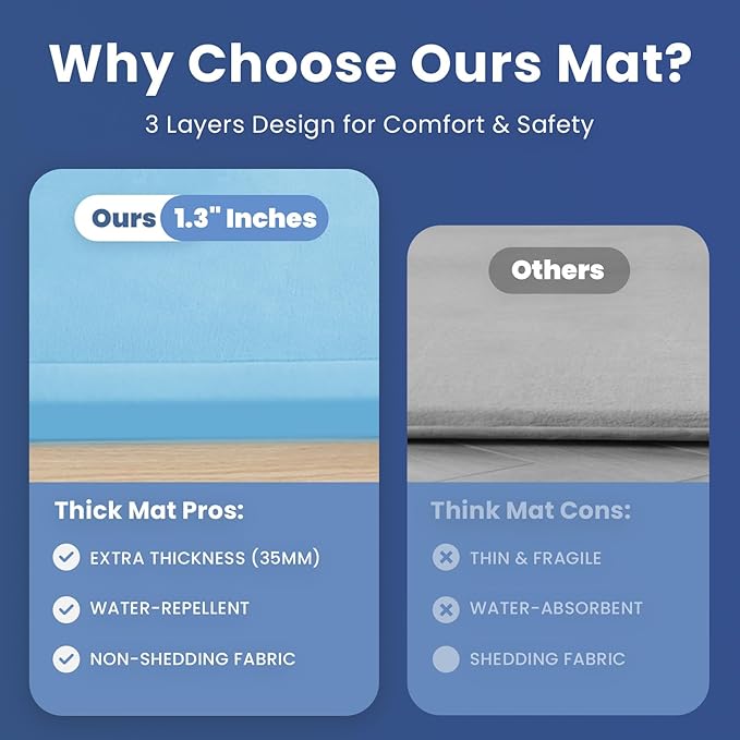 • 【Extra Thick & Noise-Reducing Play Mat】Crafted with 1.3-inch slow-rebound memory foam, this tatami mat offers a plush, comfortable surface for playing, crawling, and tummy time. Made from 100% non-shedding fabric, it provides a soft yet durable area for babies while reducing noise and protecting hardwood floors from scratches and dents.