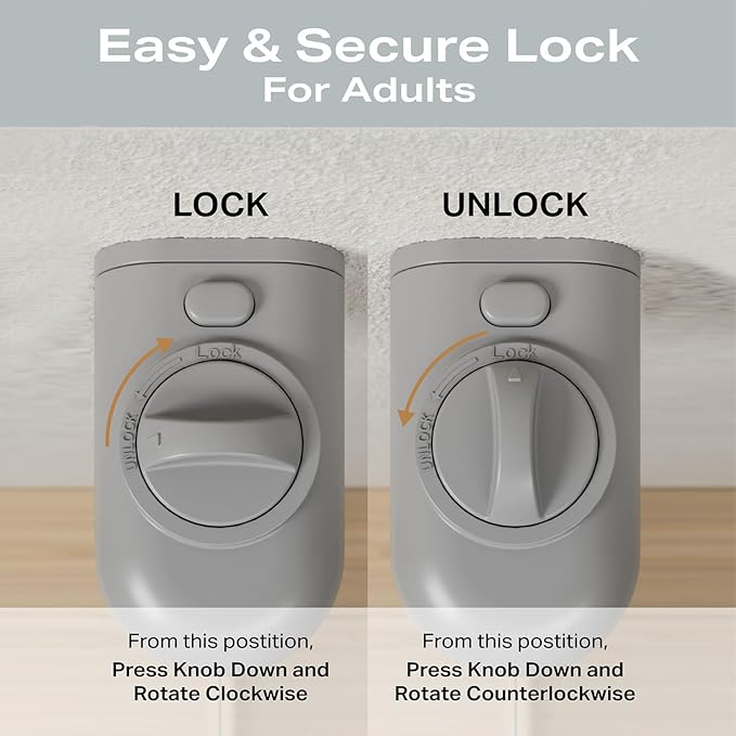 • One-Handed Operation with Pet-Proof Top Lock: The top knob allows adults to easily open and close the gate with one hand, while preventing baby & pets from escaping. The top lock adds an extra layer of security, ensuring the gate stays securely closed, even when little ones try to manipulate it