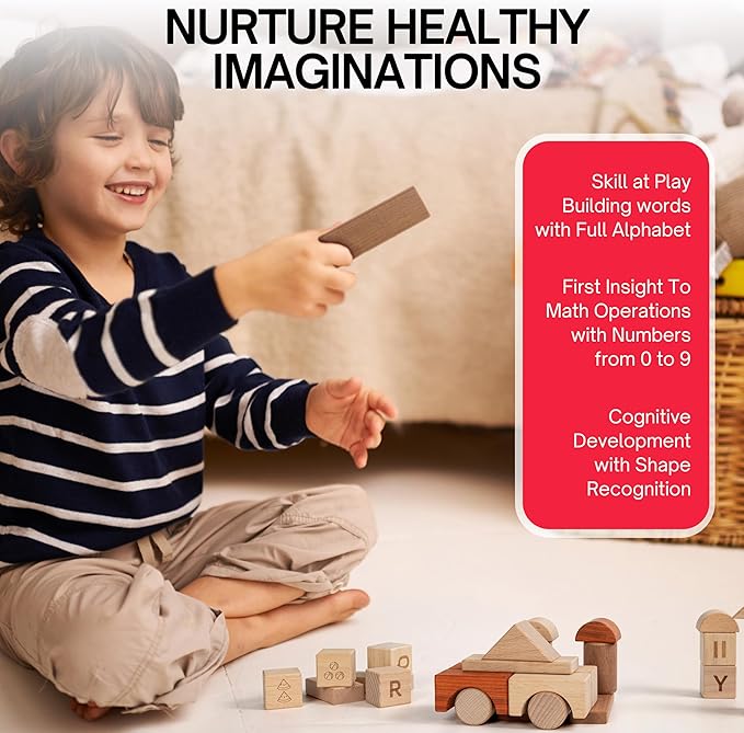 • Our abc montessori wooden building blocks are non- toxic made with 100% natural beechwood , ensuring they are safe for toddlers. Our montessori matching shapes blocks feature numbers and early math concepts, making them perfect for teaching children aged 5-8 and preschoolers about numbers and early math concepts. Ideal for littles ones who love to explore with their mouths, our stacking toy offer peace of mind to parents.