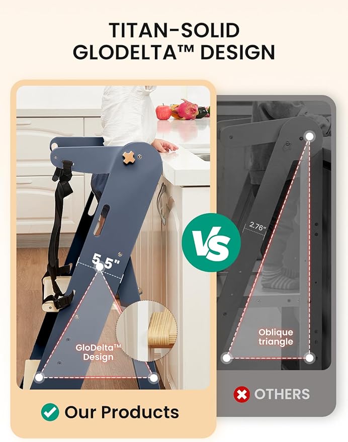 • Sturdy & Stable: Baby's independent exploration is as stable as a rock, no fear of falls even when active! The foldable toddler tower features widened side design with reinforced foot pads. Every edge is finely rounded to protect baby's hands from cuts, making growth safer and happier.