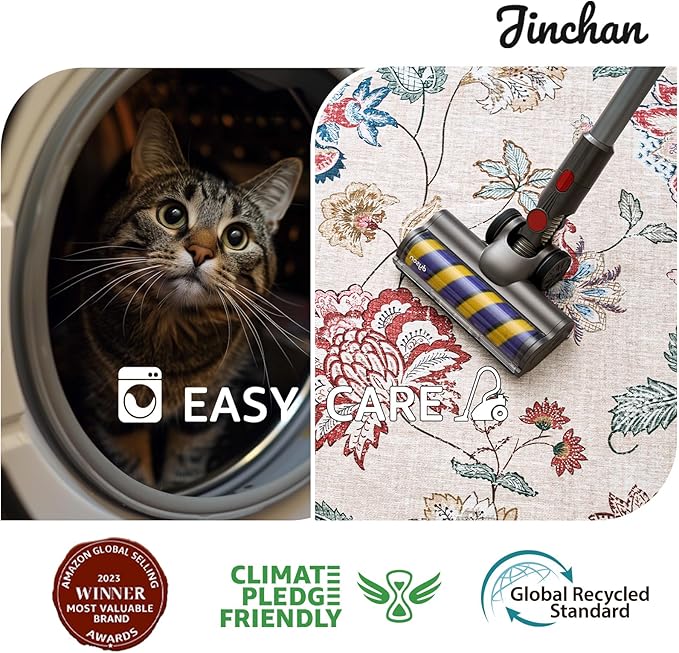 • Effortless Care for Everyday Life: Dust and pet hair vanish with a quick vacuum, spills wipe clean in seconds, and for a full refresh, simply machine wash to restore its fresh-as-new look. Enjoy floral charm without the worry of high-maintenance care.
