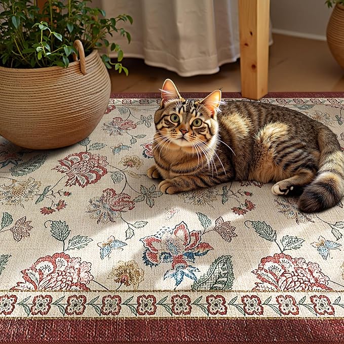 • Freshen Entryway & Kitchen: Perfectly sized to welcome guests at doorway or brighten cozy kitchen corner, this compact rug brings vintage floral charm without adding bulk. Its slim, easy-care design fits snugly in busy spots, making everyday life a little more stylish and effortless.