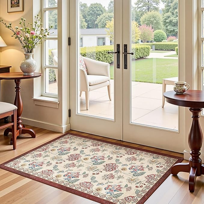 • Freshen Entryway & Kitchen: Perfectly sized to welcome guests at doorway or brighten cozy kitchen corner, this compact rug brings vintage floral charm without adding bulk. Its slim, easy-care design fits snugly in busy spots, making everyday life a little more stylish and effortless.