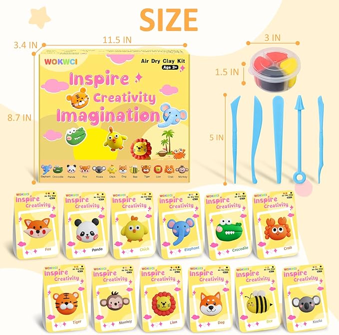 • Independent packaging, independent step-by-step tutorial card: The air dry clay set contains 12 boxes of animal clay and 5 carving tools. Each animal has an independent packaging and comes with an independent step-by-step tutorial. Each box of animal clay jars has 4 compartments filled with 4 different colored clay pieces, enough for you to create 12 animal models and create cute sculpture artworks to your heart's content