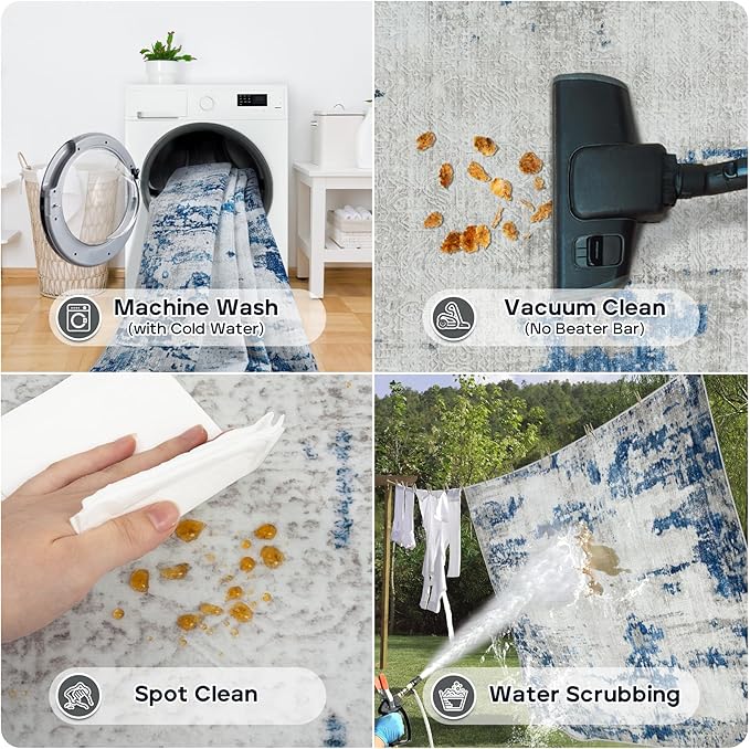 • Easy Maintenance: Keep your space fresh and clean with minimal effort. Our modern 5x7 area rugs are machine washable, spot-cleanable, and vacuum-friendly, making maintenance a breeze. Use a low-power vacuum regularly to remove dust or pet hair for everyday care. Avoid using bleach for best results