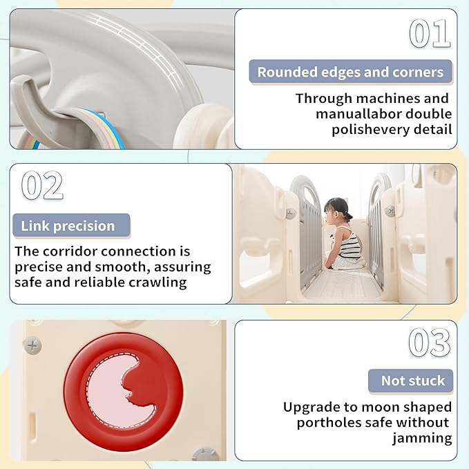 • Slide for toddlers age 1 toddler with multiple slide areas, entry steps, crawl tunnel, and hide out providing fun starter slide experience for toddlers ages 12 months 3 years