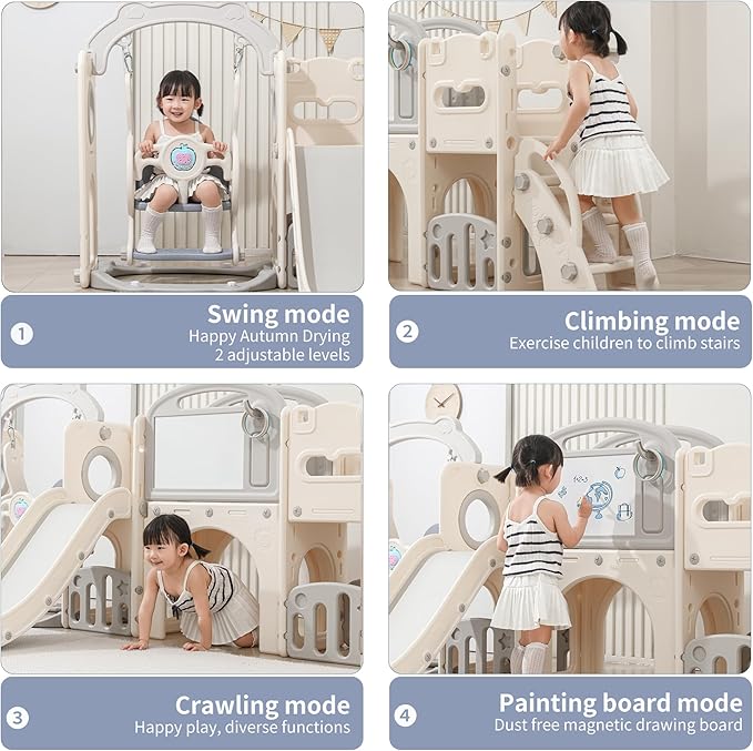 • 12 in 1 toddler playset with swing and slide set designed for toddlers ages 1-3 featuring durable ecofriendly materials perfect for indoor outdoor backyard playground use