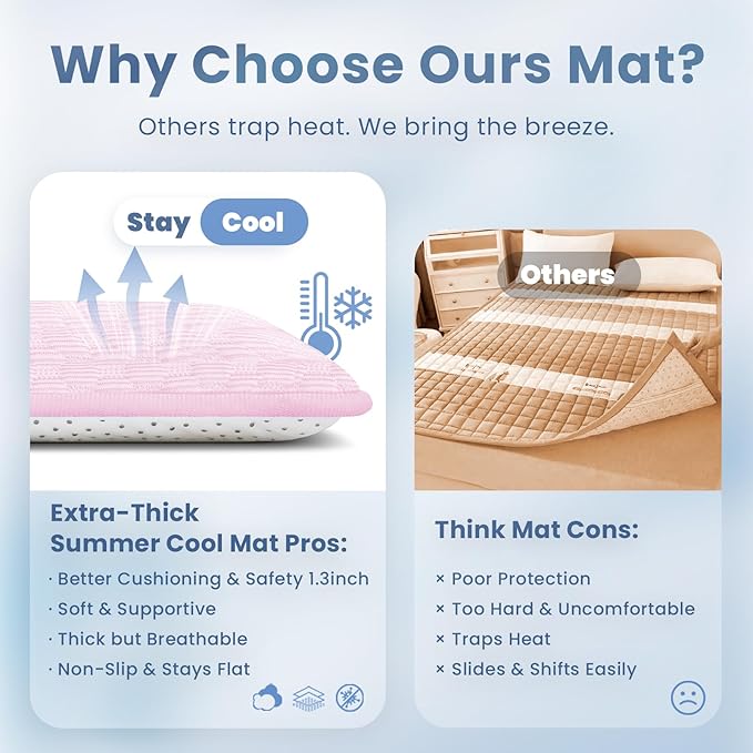 Baby Play Mat for Summer,1.3 Thick Memory Foam Cooling Floor Tummy Time Mat, Soft & Breathable, Non-Slip Rectangular for Toddlers’ Playtime & Rest(Pink,39"x59")