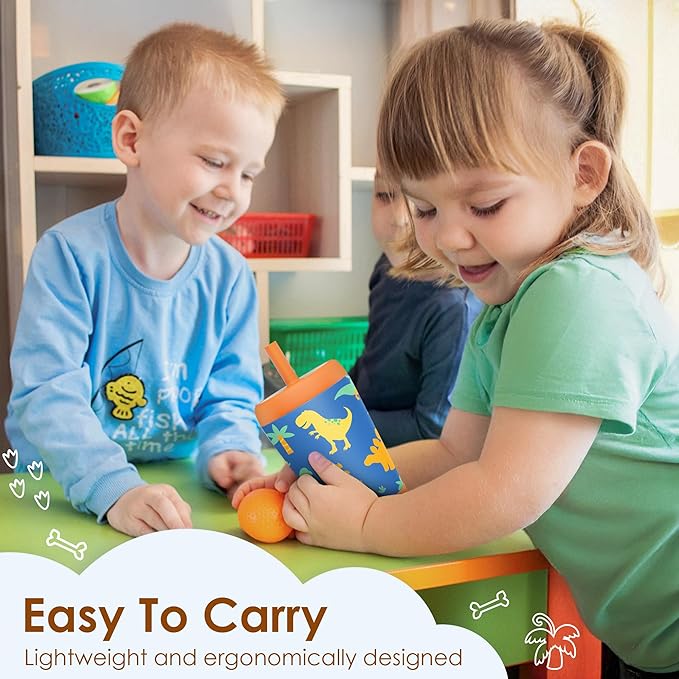 • Spill-resistant straw spout: the silicone straw features a built-in valve that allows liquid to flow only when sipping; helps reduce spills if the tumbler is tipped over; soft and flexible straw provides a comfortable drinking experience for kids and toddlers.