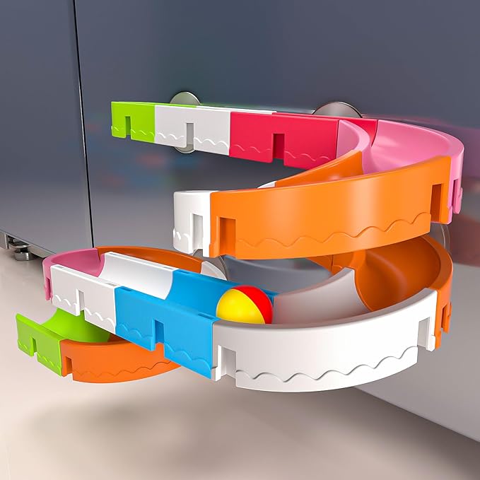 • 【Durable & Safe】Made with stainless steel ball and ABS tracks, these bath toys for toddlers 2-4. Kids can design 10+ track layouts and explore creativity in the tub