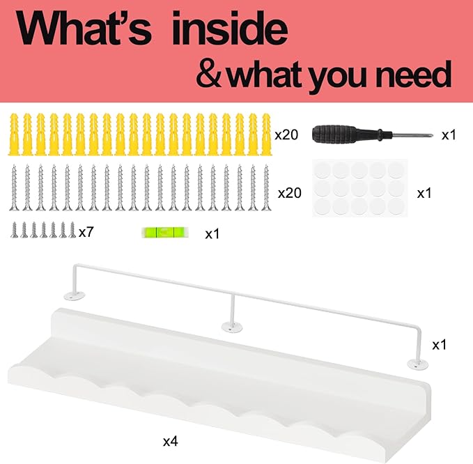 • 【Sturdy & Easy to Assemble】 - Easy to install in minutes with the installation manual. In addition, our wall shelves can hold up 20 lbs of weight when you install them firmly on the wall.