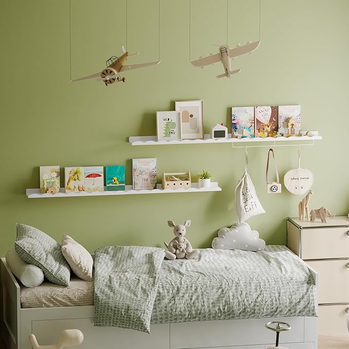 • 【Space-Saving】By mounting these floating shelves on the wall, they help store your child's belongings, freeing up valuable floor space in your nursery or children's room.