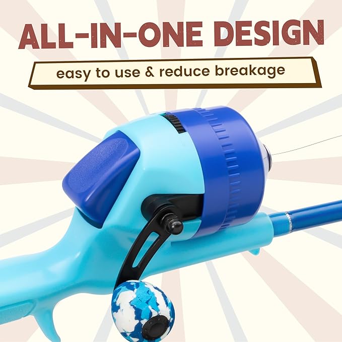 • Easy to use: WIDDEN kids fishing pole and reel combo are all in one piece, which reduces the chance of breakage and makes them easy to use. The lightweight and ergonomic design, combined with the pre-wound line, makes it simple for kids to cast and reel in their own catch. The fishing line is taken up in a tight state, which can avoid the fishing line from being entangled