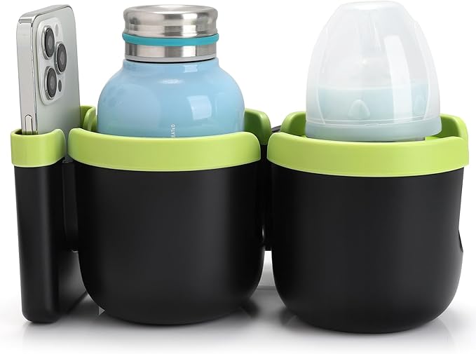 • This 2-in-1 stroller cup holder with a phone holder, it can load drinks bottles and cell phone at the same time. You can see new messages, incoming calls in the first time when you are pushing a stroller or running on a treadmill. It is applicable to most cell phones on the market.