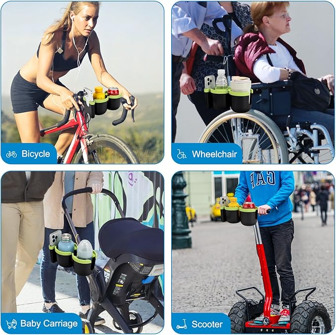 • Wide Compatibility: This universal cup holder with phone holder compatible with most baby strollers, walker, wheelchair, rollator, bike, scooter, boat handle bar, shopping cart, kayak, ATV, lawnmowers, motorcycle, treadmill, golf push cart and so on.