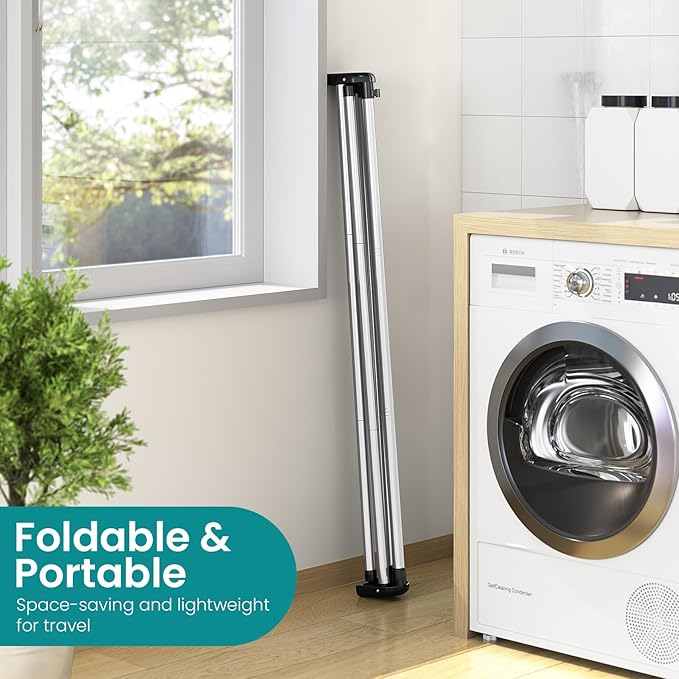 • Generous Drying Capacity: This foldable laundry drying rack offers 55 inches of drying space, allowing you to hang a full load of laundry in one go. No more needing to drape extra items over chairs or hang them in doorways.