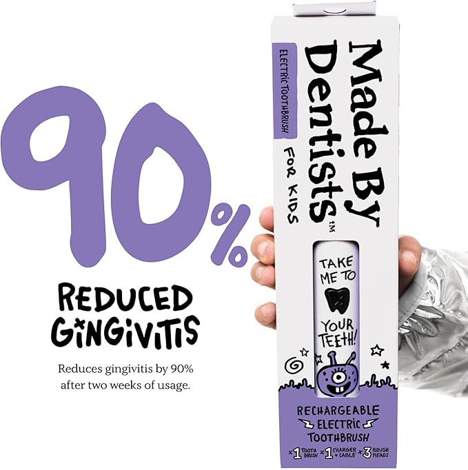 • Rechargeable Electric Toothbrush – Specially designed for kids with an ergonomic grip and small brush head for gentle, effective cleaning. Perfectly sized for little mouths and recommended for children and toddlers aged 2 and up.