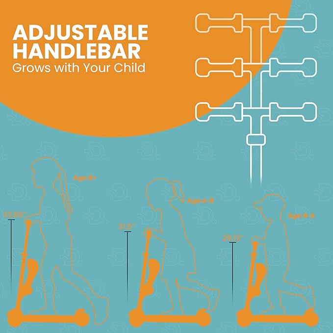 • Grows with Your Child – The adjustable T-bar handlebar offers four height settings (26.77’’, 29.13’’, 31.5’’, and 33.86’’ inches), making this kids 3 wheel scooter the perfect ride for toddlers as young as 2 years old weighing up to 165 lbs.