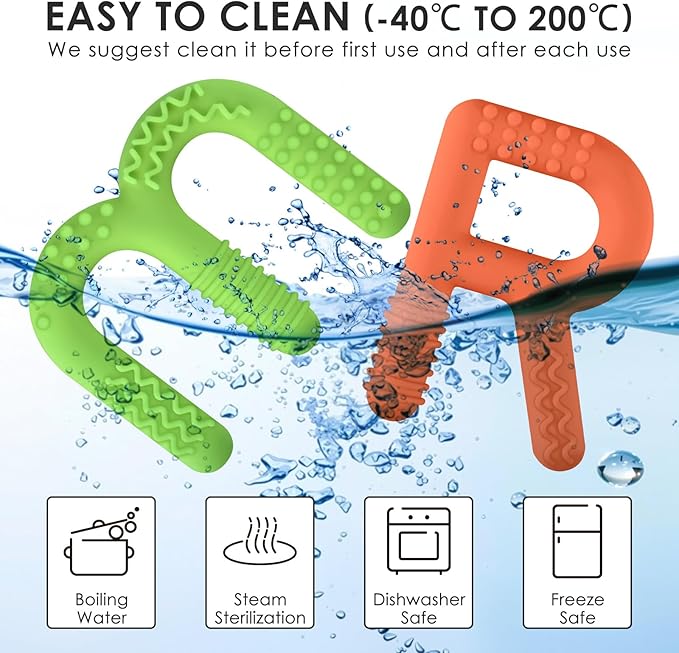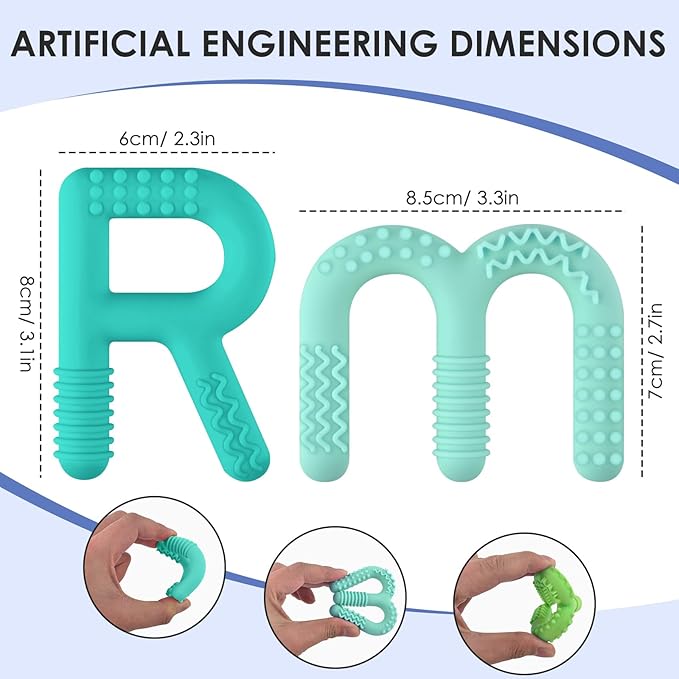 • Multi scenario use: Our sensory teething toys set includes 2 pcs R shaped and 2 pcs M shaped sensory chewy toys. Children with autism, ADHD, and sensory processing disorders can use toddler teething chew toys at home to help relax and concentrate, as auxiliary tools in the classroom to promote learning and development, and as part of sensory training during treatment