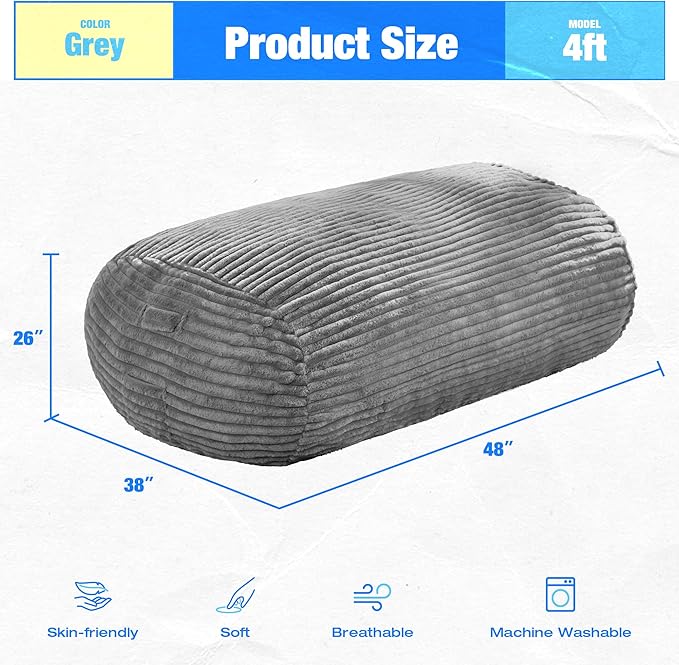 • Comfortable Fabric: Big bean bag chair for adults is made of stripe fabric that is soft and skin-friendly. The cover is removable and can be machine washed for easy cleaning. Once it's washed, the 4ft bean bag chair will revitalized, looking and feeling just like new again!