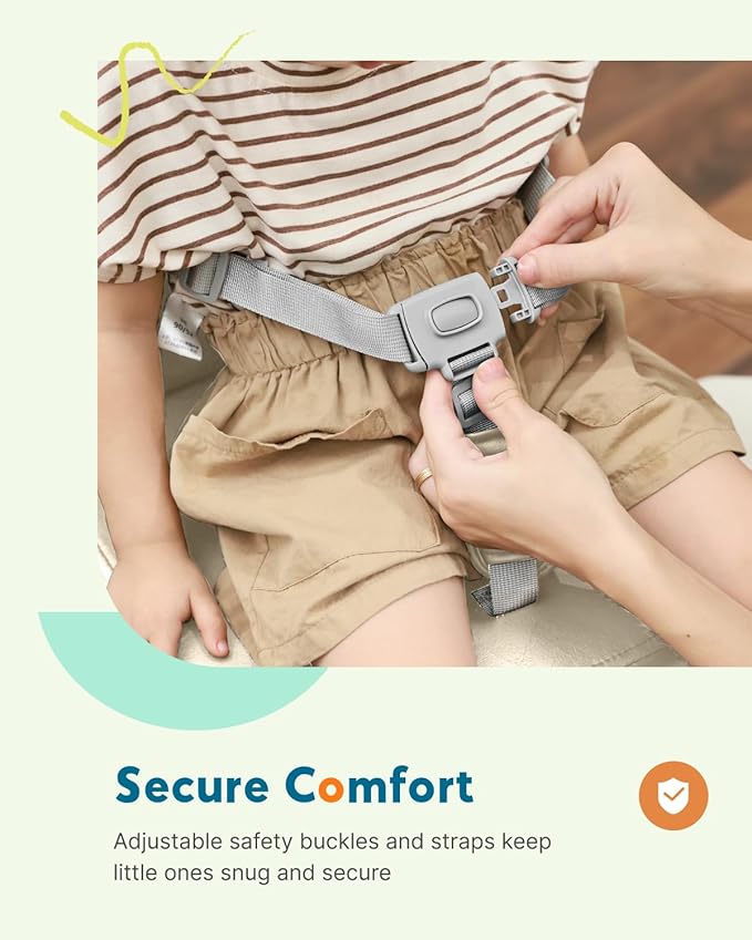 • Secure & Stable: 3-point adjustable harness with front buckle and non-slip base ensures secure fit on booster seat for kitchen chair. Support kids for worry-free mealtimes