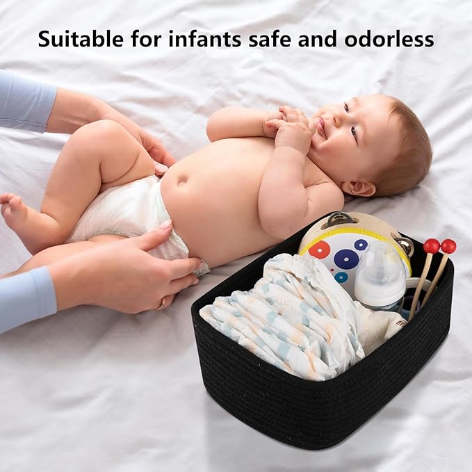 • [Premium Cotton Material]:Our cute baby storage baskets are made of high quality cotton hand-woven by workers, soft and odorless, no sharp edges and corners, very friendly to babies and pets, a good choice for baby-sitting baskets and dog or cat toy baskets