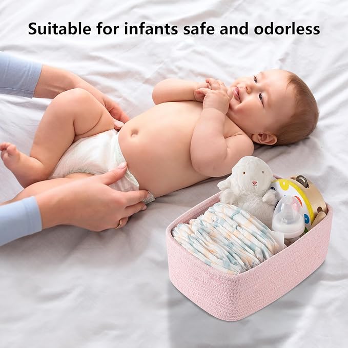 • [Premium Cotton Material]:Our cute baby storage baskets are made of high quality cotton hand-woven by workers, soft and odorless, no sharp edges and corners, very friendly to babies and pets, a good choice for baby-sitting baskets and dog or cat toy baskets