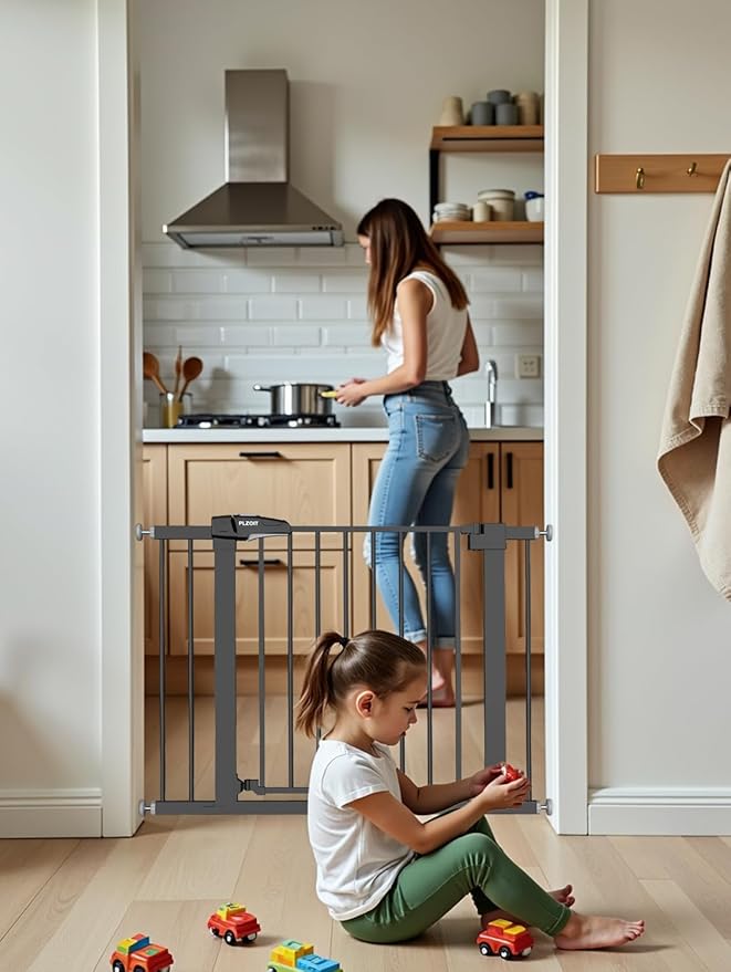 • Keep Your Little Ones and pets Safe: The baby gate for stairs is made of all-metal structure, it can withstand impacts from pets. Don't need to worry about baby gates with door being pushed down and hurting your children or dogs. The pet gate is chew-proof, lead-free and non-toxic, providing a secure barrier wherever you need it. Ideal for a family with children and pets
