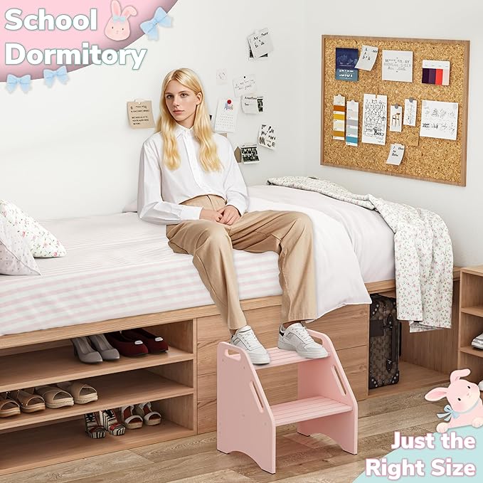 • IDEAL 13.6'' HEIGHT FOR HIGH BEDS: With an overall height of 15.75'' and a top step height of 13.6'', this stool is tailored for both adults and children facing challenges while entering or exiting the bed. It suits standard beds, high beds, lofty mattresses, and dorm beds, providing effortless access for adults and kids, thereby boosting convenience and safety. Moreover, it serves as a valuable addition to your closet