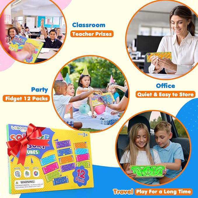• Teacher-Approved Tools for Classroom Rewards & Treasure Boxes: Safe, durable, and silent, our stress relief toys are loved by teachers and parents alike. Use them as school treasure box prizes, birthday favors, or quiet desk companions for reducing classroom anxiety and fidgeting. 12Pack and Variety of Mazes designs fidget toys packs is also ideal for party favors