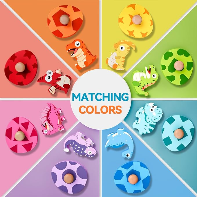 • Color Matching & Fine Motor Skills: The color of the eggs matches the dinosaurs, and toddlers can match the eggs to the dinosaur puzzle pieces. With easy-grasp wooden knobs, babies and toddlers will delight in practicing grasping, lifting, and manipulate the pieces, which enhances their fine motor skills.