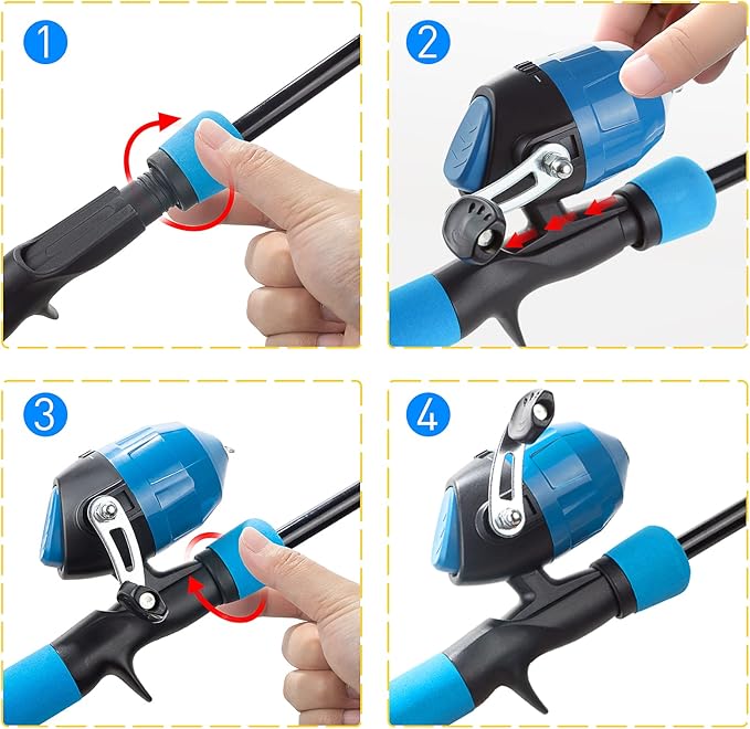 • 【Fishing Pole Starter Kit for Kids】This fishing pole and reel combo 2Set contains everything children needs to get started organized with the handy carrying case - 4.92 FT telescopic fishing rod for boys girls+fishing reel with pre-spooled line and extra 50m line + 64pcs colorful lures and hooks set in tackle box + carrier bag + operating manual.