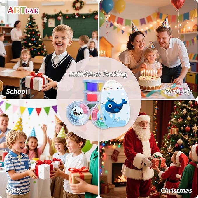 • 2.Artpar Colorful Air Dry Clay and 12 Sea Animal Themed Clay Model Making Set: Contains easy-to-follow step-by-step tutorials for 12 sea animals, perfect for creating adorable sea animals and whimsical sculptures. 12 compartmentalized canisters of clay (4 colors per box) to make the same sea animal models, and the rest can be saved to make your creative clay models. 4 easy-to-use sculpting tools, enough for your sculpting needs.