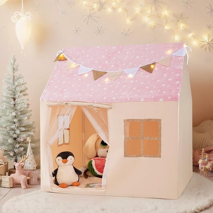 • Ideal Gift For Girls & Boys: The cute playhouse tent includes a set of posts for kids to build a small playhouse, star lights and . Provide a more comfortable place for children to play, read, and take pictures.