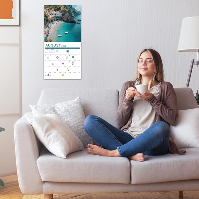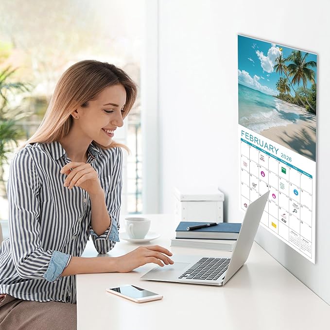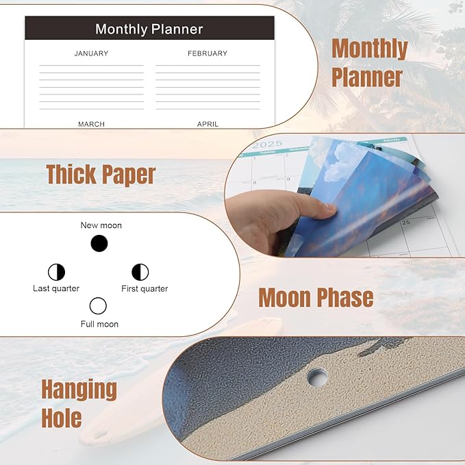 • 🏖️【Easy to Hang & Stickers】- The calendar 2025-2026 is easy to hang, each page is equipped with a well-positioned hanging hole, and the hanging hole is kept at a certain distance from the edge, not easy to break. We also include three stickers for your convenience to mark events. Additional monthly planner on the last page.