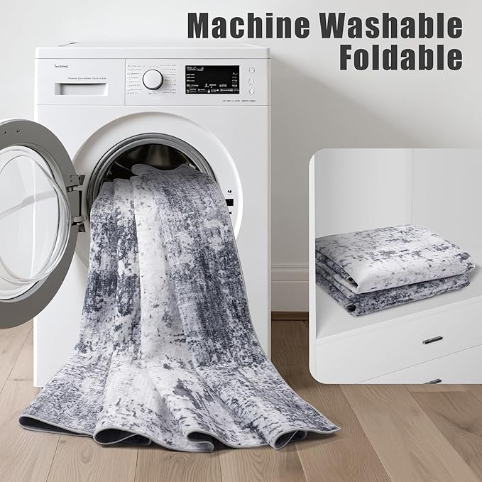 • Machine Washable Rug: Say goodbye to hidden dirt and cleaning hassles. The low soft pile of this 9x12 rug keeps most dirt on the surface, making it easy to clean with a carpet brush.The added bonus of it being machine washable makes it a breeze to maintain and saves you time. 6'x9 'and above are recommended to use nearby commercial laundry rooms