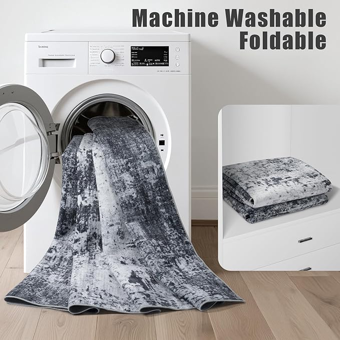 • Machine Washable Rug: Say goodbye to hidden dirt and cleaning hassles. The low soft pile of this 6x9 rug keeps most dirt on the surface, making it easy to clean with a carpet brush.The added bonus of it being machine washable makes it a breeze to maintain and saves you time. 6'x9 'and above are recommended to use nearby commercial laundry rooms