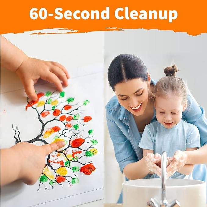 • Mess-Free truly washable formula – paint for kids rinses off skin, clothes, tables and walls with just soap and water; this toddler painting set is a perfect choice for parents and teachers who fear stains.