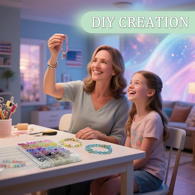 • GREAT GIFT: Our crystal glass beads bracelet making kit, featuring delightful glass bead charms, is an ideal present for those with a passion for handmade jewelry. It makes an excellent gift for kids, girl teens, and even adults eager to create their own jewelry pieces or craft jewelry for friends. The kit not only helps kids divert their attention from video games but also significantly enhances their creativity. Engaging in fun parent - child activities with this kit strengthens the bond between parents and kids.It serves as a wonderful gift for various occasions such as birthdays, Thanksgiving, Valentine's Day, Mother's Day, and Christmas.